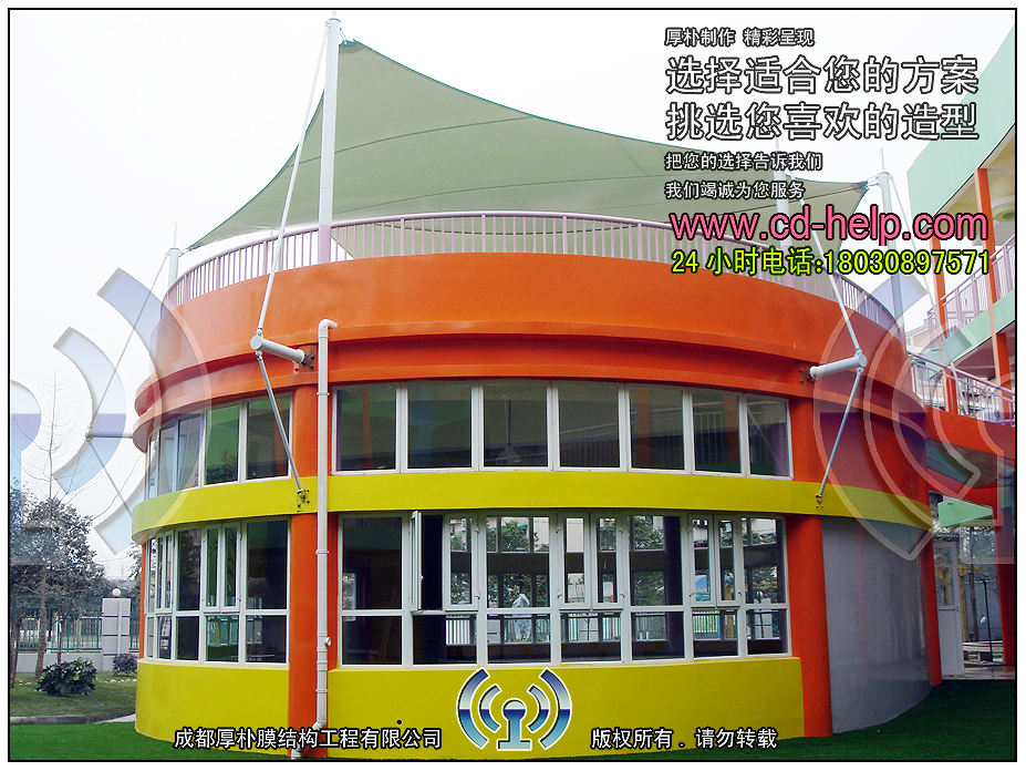 ---1、造型能力强,膜布是一种软性材料,它虽然柔软,但是强度远远超过了阳关板等一系列遮阳材料。所以它是很多设计师做遮阳结构设计的首选材料。
