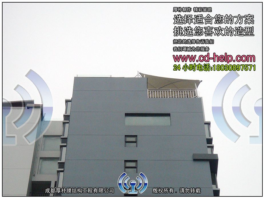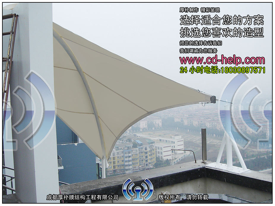 ---1、造型能力强,膜布是一种软性材料,它虽然柔软,但是强度远远超过了阳关板等一系列遮阳材料。所以它是很多设计师做遮阳结构设计的首选材料。