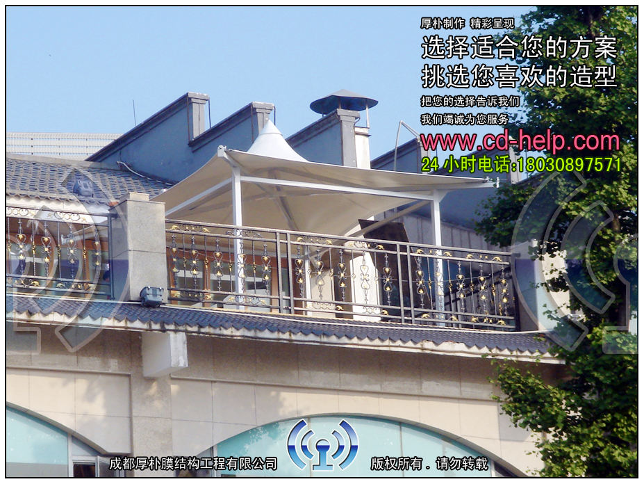 ---1、造型能力强,膜布是一种软性材料,它虽然柔软,但是强度远远超过了阳关板等一系列遮阳材料。所以它是很多设计师做遮阳结构设计的首选材料。